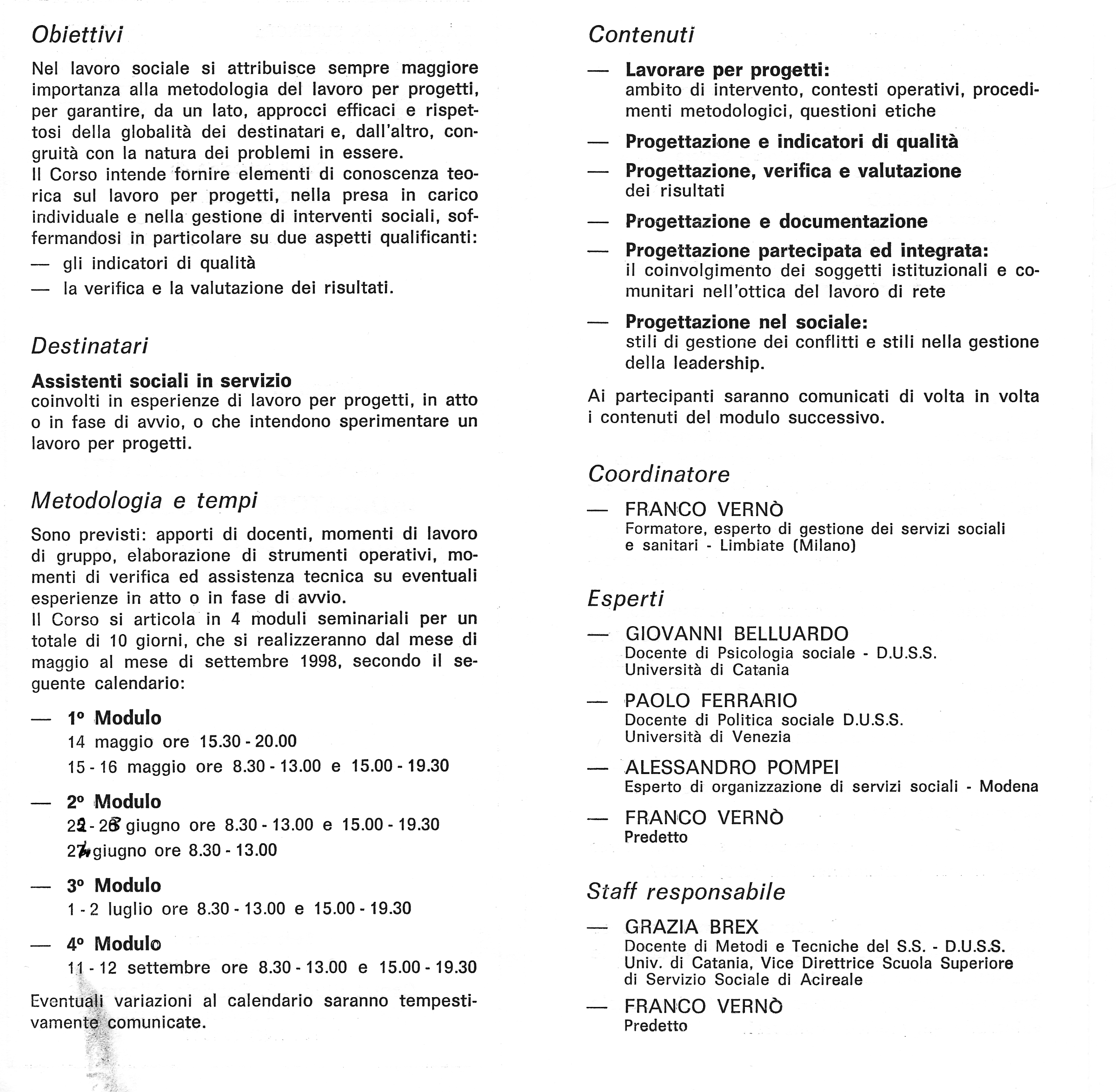 Eas - Scuola superiore di servizio sociale di Acireale, Centro iniziativa culturale di Acireale, Università degli studi di Catania - Facoltà di Scienze politiche con il patrocinio della Regione siciliana - Assessorato del lavoro